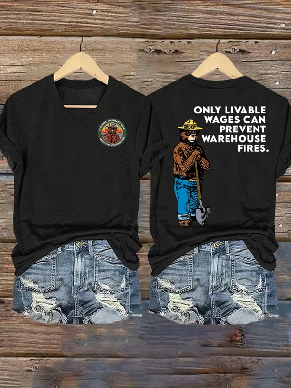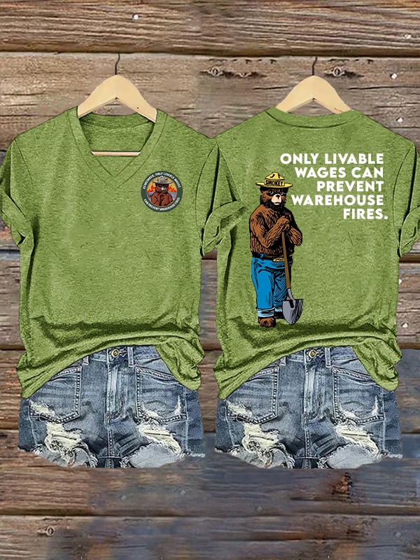 V-Neck Retro Resist Save The Forest Service Print T-Shirt