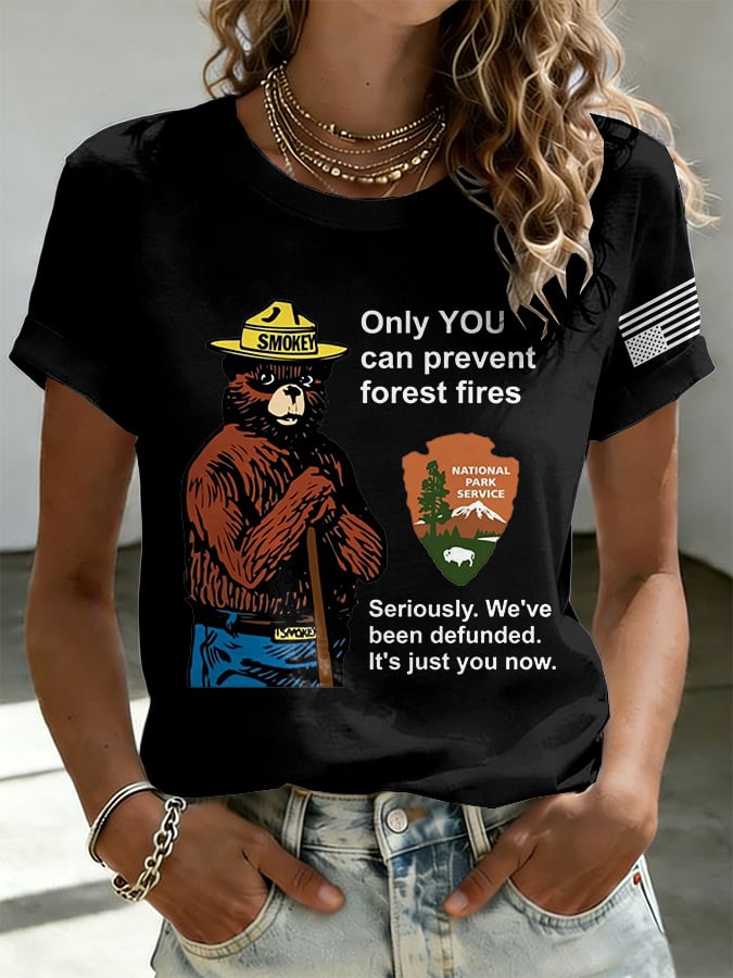 Retro Resist Save The Forest Service Only You Can Prevent Forest Fires Seriously. We've Been Defunded. It'S Just You Now Print T-Shirt