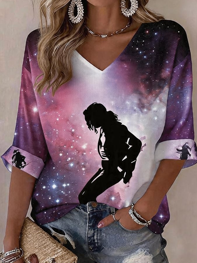 Women's Superstar Art Print V Neck T-shirt
