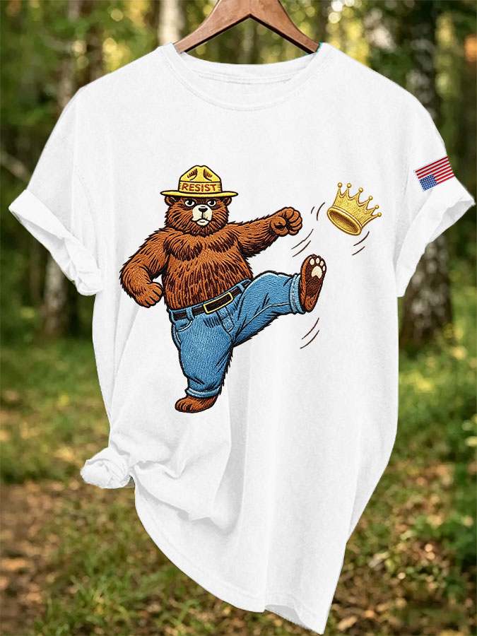 Women's Retro Save The Forest Bureau Print Casual T-Shirt